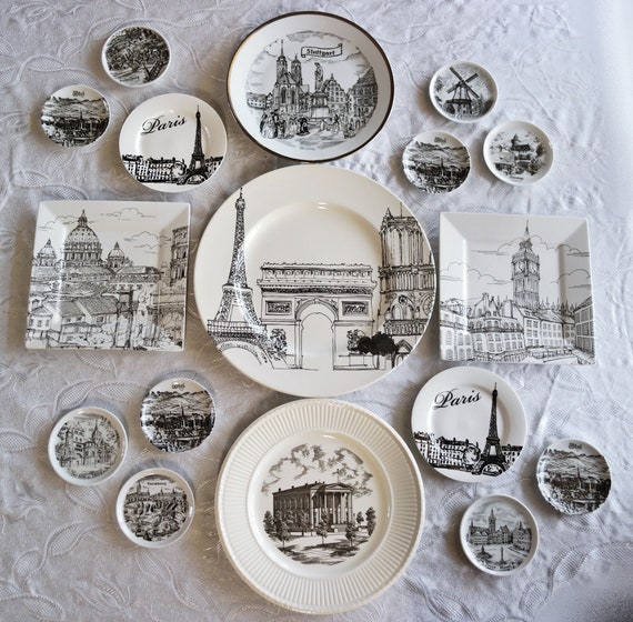 Black White Plates Set Of 17 Gallery Wall Collection Etsy